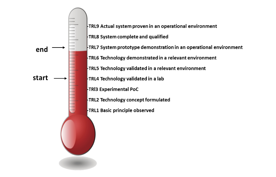 The project starts at Technology Readiness Level (TRL) 4 – Technology validated in a lab and, by the end of its implementation, should reach TRL 7 – System prototype demonstration in an operational environment (Fig. 3).